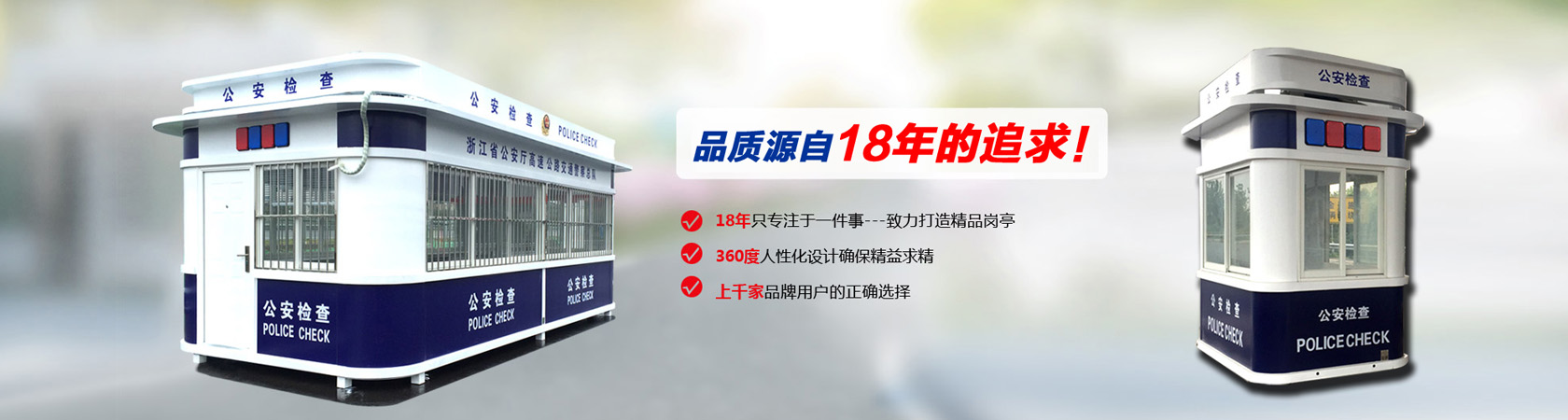 公司主要生產(chǎn)各類崗亭,包括高速公路收費亭系列、治安崗亭、交通崗亭、售貨亭、公交亭、書報亭、小區(qū)崗亭等,崗亭材質齊全有:不銹鋼崗亭、鋼結構崗亭、鋁塑板崗亭、玻璃崗亭、木制崗亭、金屬雕花板崗亭、PVC掛板崗亭等,適用于各政府機關、道路交通、機場港口、地產(chǎn)建筑等多個行業(yè)領域。